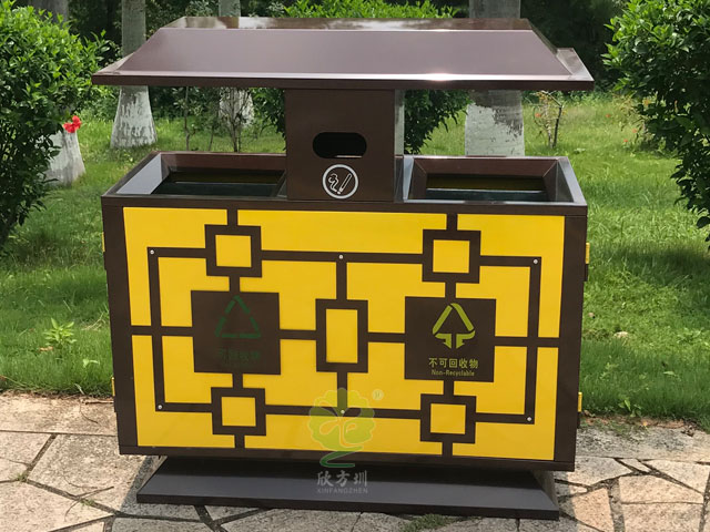 欣方圳戶外仿古典風(fēng)分類垃圾箱細(xì)節(jié)展示