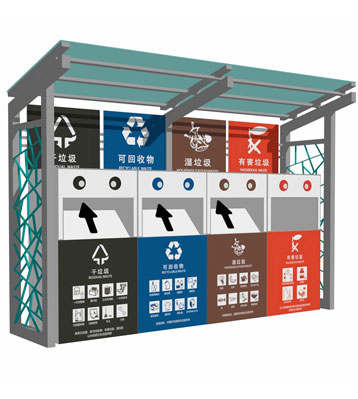 • 產(chǎn)品材質:垃圾分類收集站整體尺寸制作需求可按客戶要求定制,常用的制作材質有鍍鋅板、不銹鋼、戶外塑粉靜電噴涂,其工藝特點表現(xiàn)為較高的戶外適應性,表面涂層堅固,不易脫落,抗紫外線以及耐候性強。可回收物投口為藍色,其他垃圾為淺灰色,廚余垃圾綠色,有害垃圾為紅色,顏色搭配美觀,配套洗手盆投放后清洗。