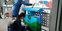 藍(lán)天白云清新美麗,可愛(ài)卡通天真童趣。鄭州快速公交站臺(tái)內(nèi)兩個(gè)原本普普通通的環(huán)保果皮箱,經(jīng)過(guò)一番裝扮與改造,成為了兩個(gè)別具藝術(shù)氣息的環(huán)保果皮箱。這兩個(gè)環(huán)保...