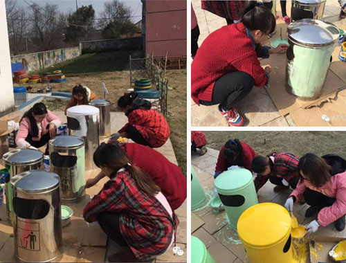 為了進(jìn)一步提升校園文化,創(chuàng)建更加優(yōu)美的育人環(huán)境,推動(dòng)幼兒園建設(shè)朝著凈化、美化、規(guī)范化的方向發(fā)展,幼兒園青年教師對(duì)園內(nèi)垃圾桶進(jìn)行美化、裝飾。 教師們先選稿、討論設(shè)計(jì)方案,再畫底稿,最后調(diào)油漆上色。經(jīng)過老師們的巧手布置,原本單調(diào)呆板的垃圾桶一個(gè)個(gè)鮮活起來。孩子們來園看到一個(gè)個(gè)五彩繽紛的垃圾桶興奮極了,非常樂意把垃圾撿起來扔進(jìn)漂亮的垃圾桶里。 據(jù)悉,本次活動(dòng)是該園繼設(shè)計(jì)創(chuàng)意家園聯(lián)系欄、廢舊輪胎變廢為寶、裝飾走廊墻飾等活動(dòng)后的又一次環(huán)境創(chuàng)新活動(dòng)。這些活動(dòng)不僅有效促進(jìn)了該園教師環(huán)境創(chuàng)設(shè)理念的更新、提升了創(chuàng)設(shè)技能和品位,同時(shí)促進(jìn)了教師之間的相互學(xué)習(xí),認(rèn)識(shí)到了環(huán)境創(chuàng)設(shè)對(duì)幼兒發(fā)展的價(jià)值,更為自己積累了有益的經(jīng)驗(yàn),為以后更好的開展環(huán)境創(chuàng)設(shè)打下堅(jiān)實(shí)的基礎(chǔ)。