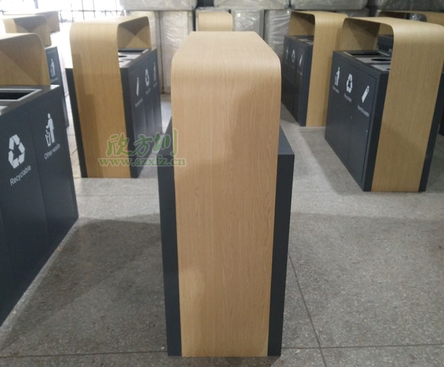 欣方圳三分類仿木紋鋼制烤漆垃圾桶批量生產(chǎn)圖