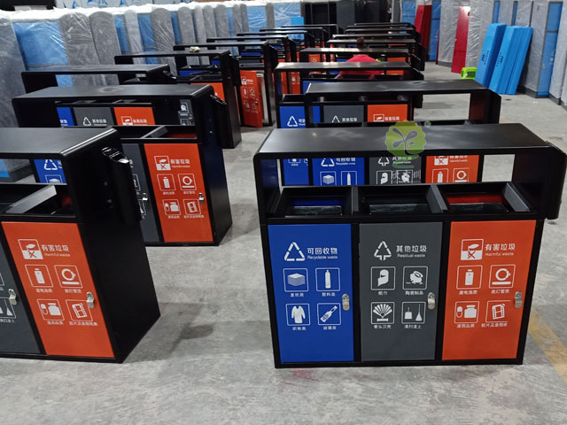 欣方圳戶外三分類垃圾桶工廠批量生產(chǎn)圖