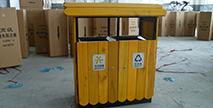 欣方圳景區(qū)屋形鋼木分類垃圾箱廠家批量生產(chǎn)圖