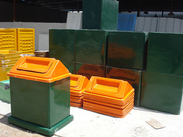 玻璃鋼垃圾桶桶身和內(nèi)膽部分,采用高級(jí)玻璃鋼材質(zhì)一次成型,經(jīng)過(guò)打磨、除塵 、噴漆等一系列后期工藝然后出成品。